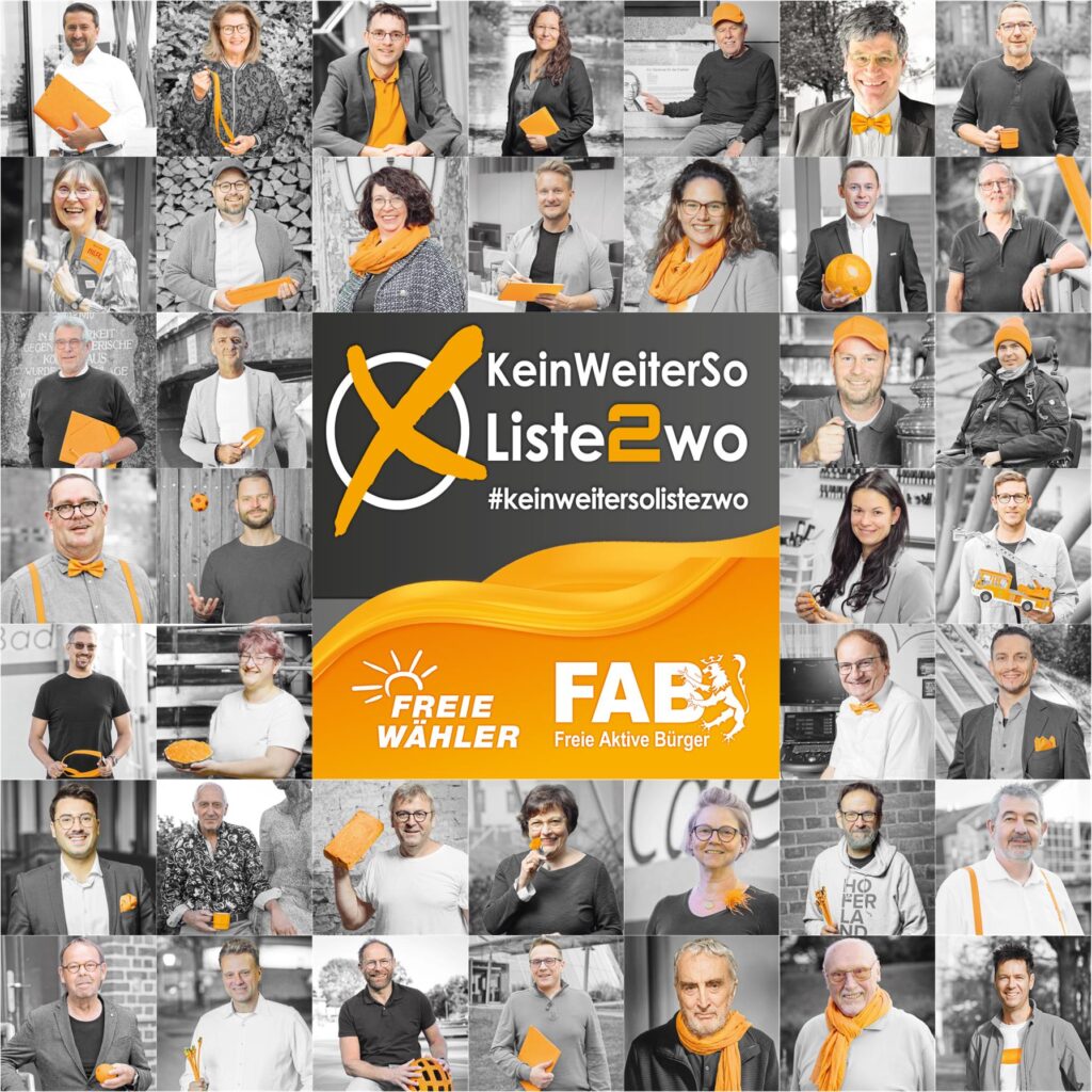 Dr. Johannes Gerstner [14] steht für eine Energiewende, die praktisch funktioniert – auch im Hofer Alltag. Vincenz Dippold [15] bringt juristische und wirtschaftliche Expertise ein – für faire Rahmenbedingungen in unserer Stadt. Dr. Anja Lauterbach [17] verbindet Nachhaltigkeit und technische Innovation. Dr. Kay-Jochen Rinck [30] sorgt für geschützte Ideen, die zu Arbeitsplätzen in Hof werden. Jenny Kinne [33] steht für Mut zum Gründen und Unterstützung für Selbstständige, die hier etwas aufbauen wollen.